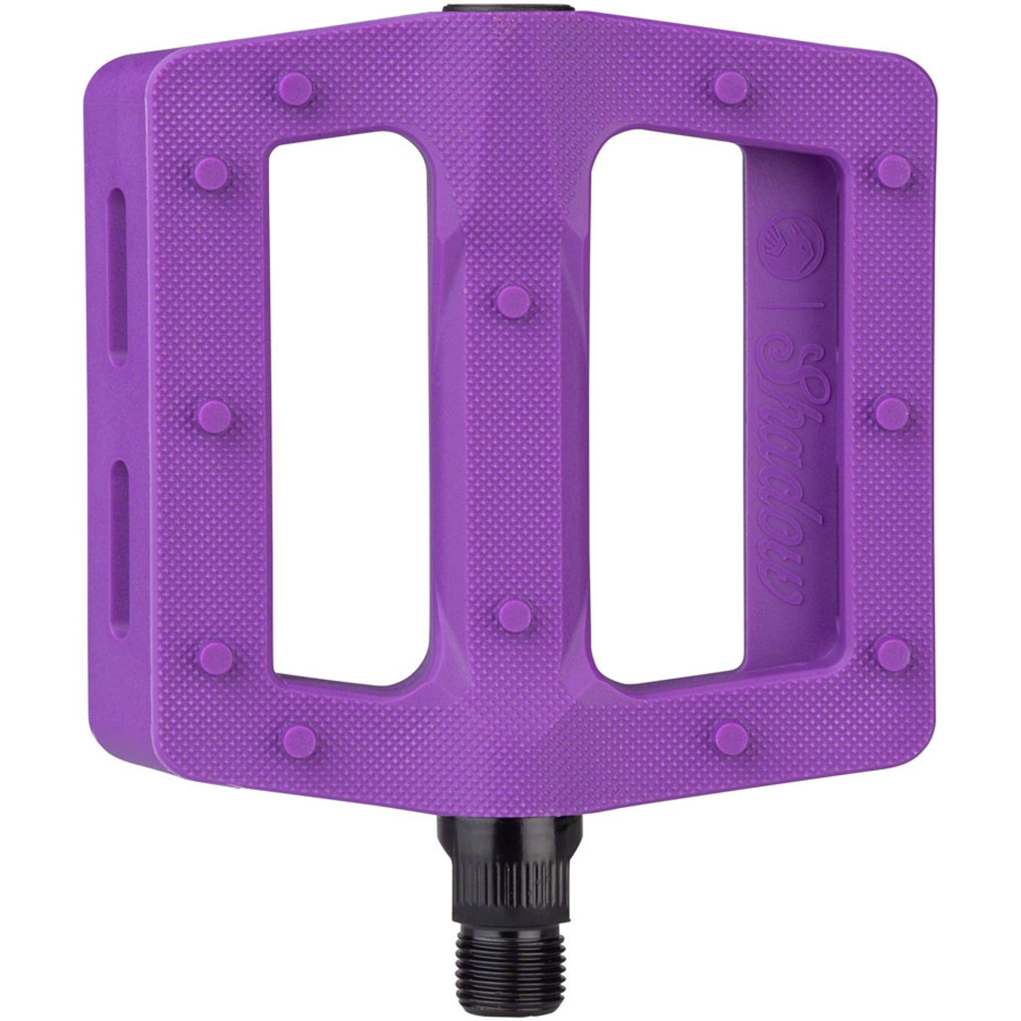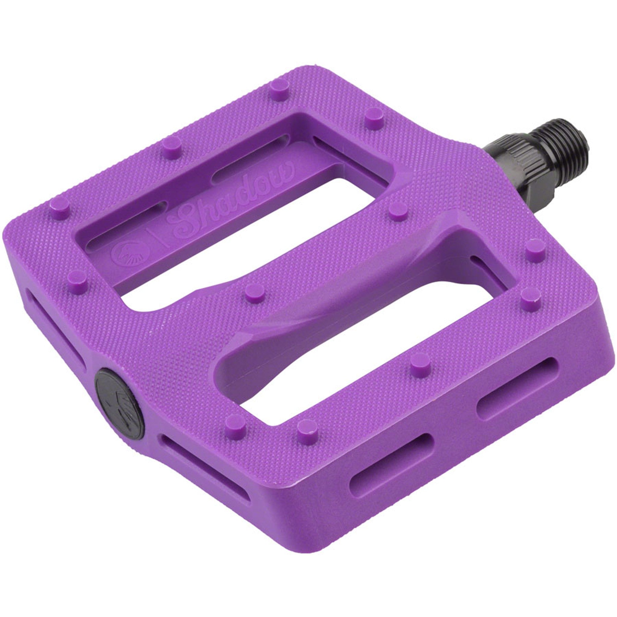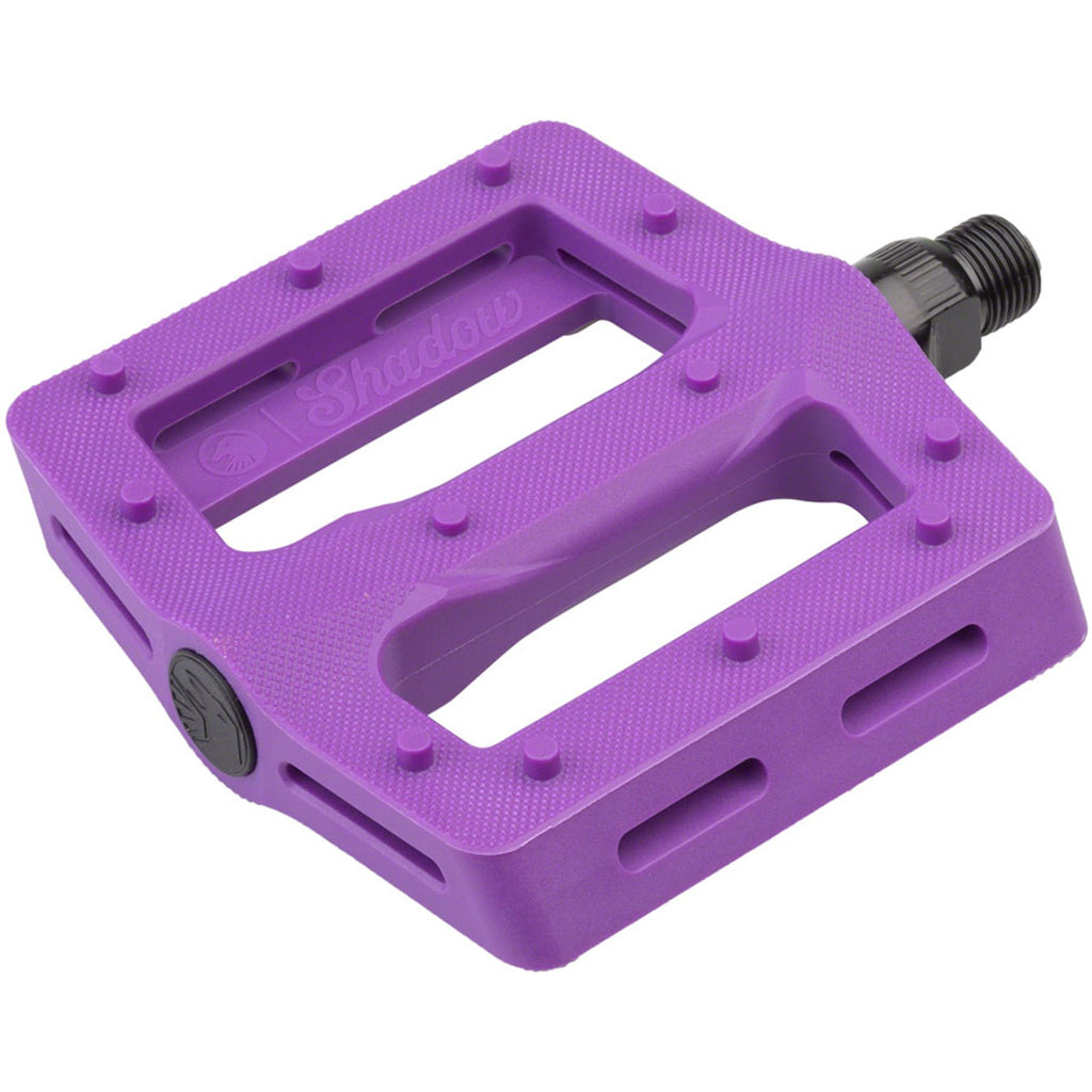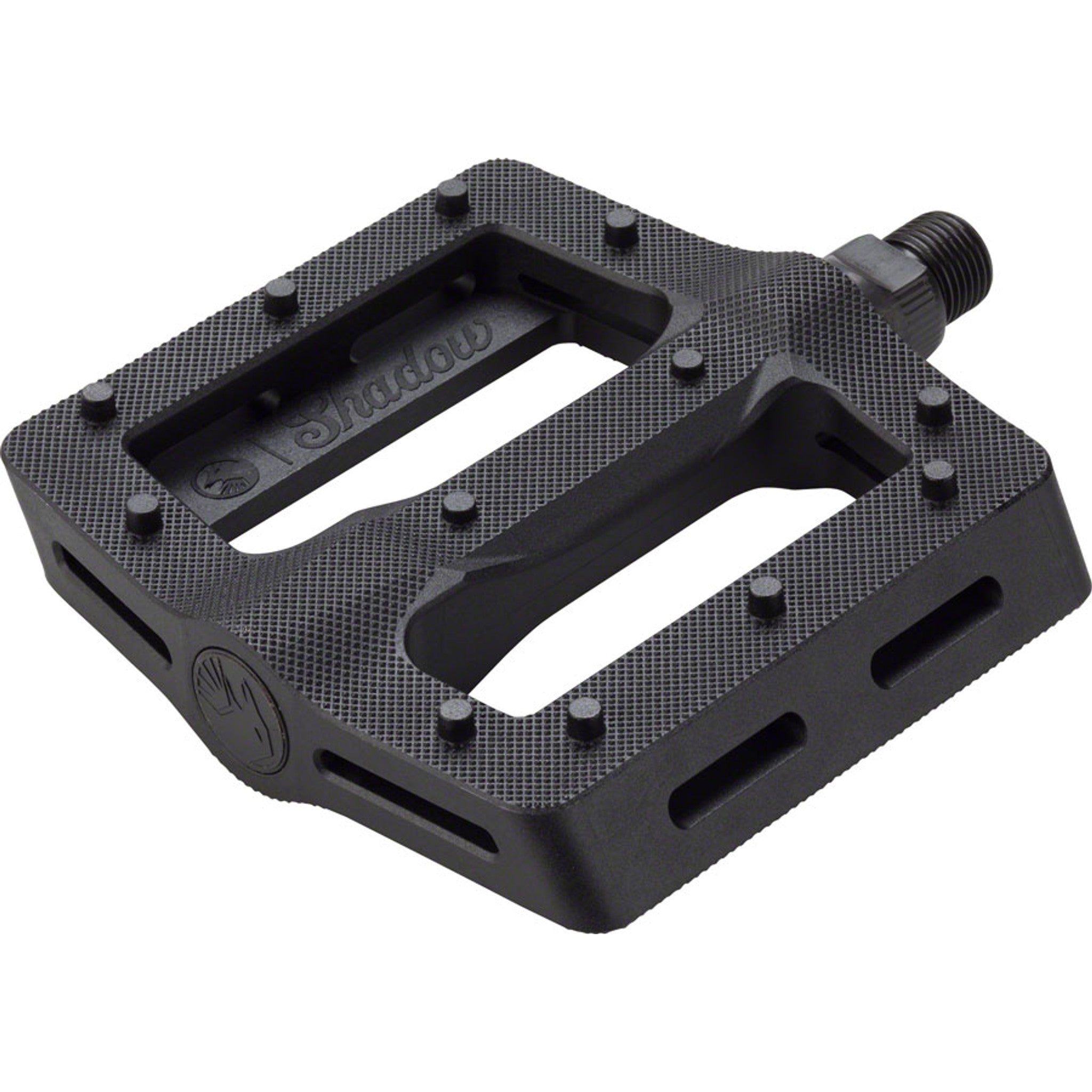 The new Shadow Surface Pedal is made with performance and function in mind. Starting with a wider and longer, slim platform. The wide 105mm x100mm platform is specifically shaped to be thin and stiff while still offering an overall concave shape.Added advanced micro knurling and 12 pins per side for a maximum grip that still allows foot adjustments mid-shred. Made with the same proven nylon composite material as the Ravager pedal, with a heat treated chromoly axle that includes a 6mm broach for ease of installation and high end looks.